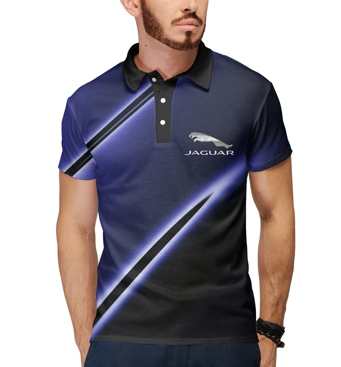 Мужское поло с принтом «Jaguar neon stripes»
