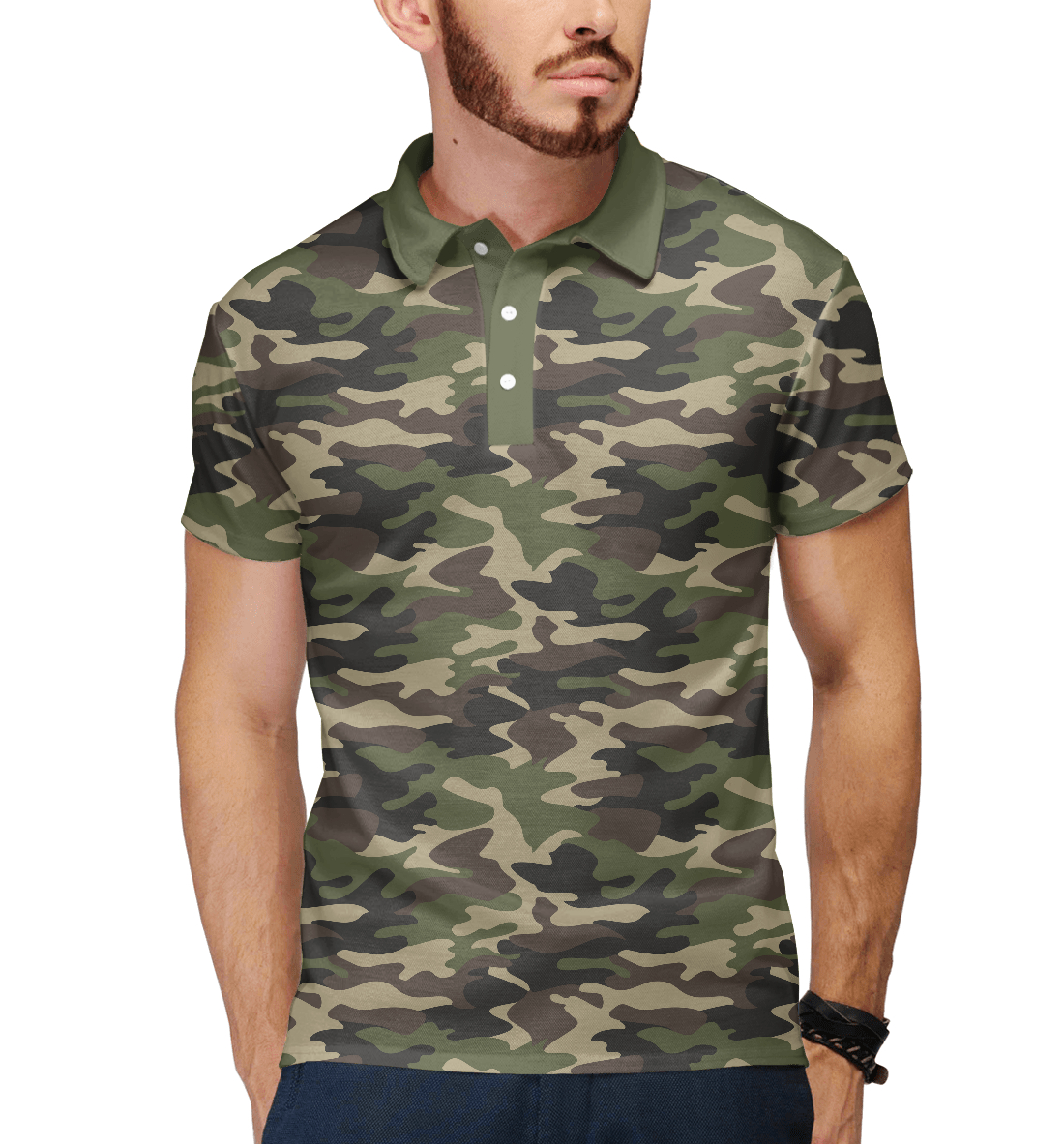 Мужское поло с принтом «Камуфляж Лесной»