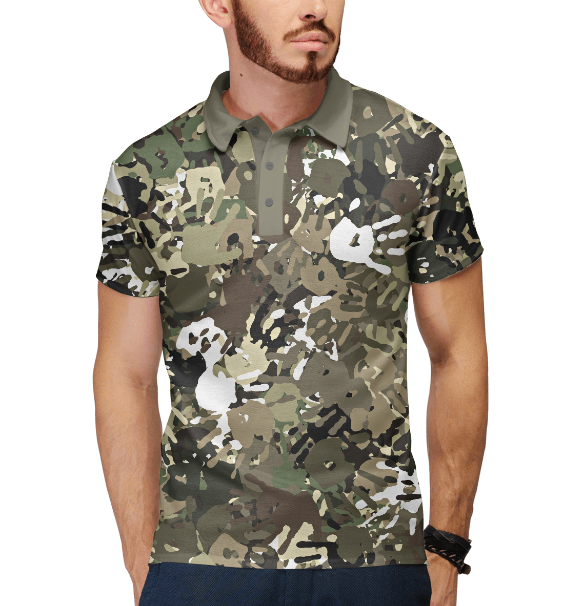 Мужское поло с принтом «Камуфляж с отпечатками рук»