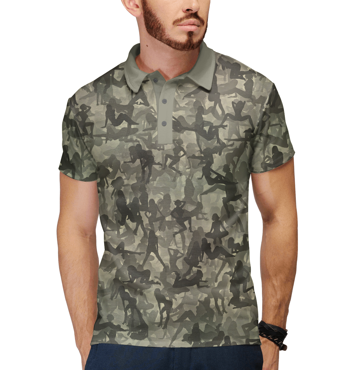 Мужское поло с принтом «Камуфляж с распутными девицами»