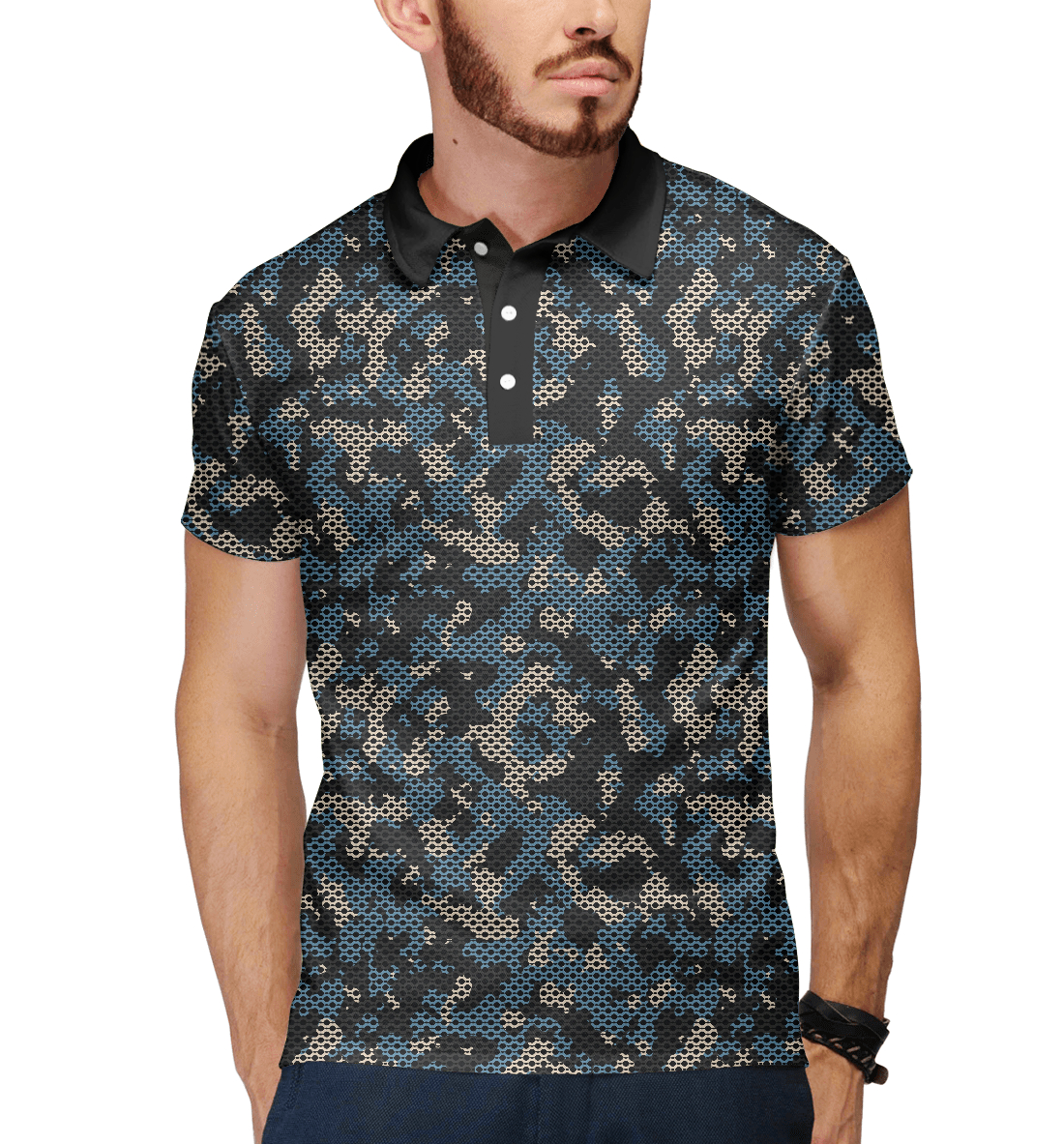 Мужское поло с принтом «Камуфляж Синей Расцветки»