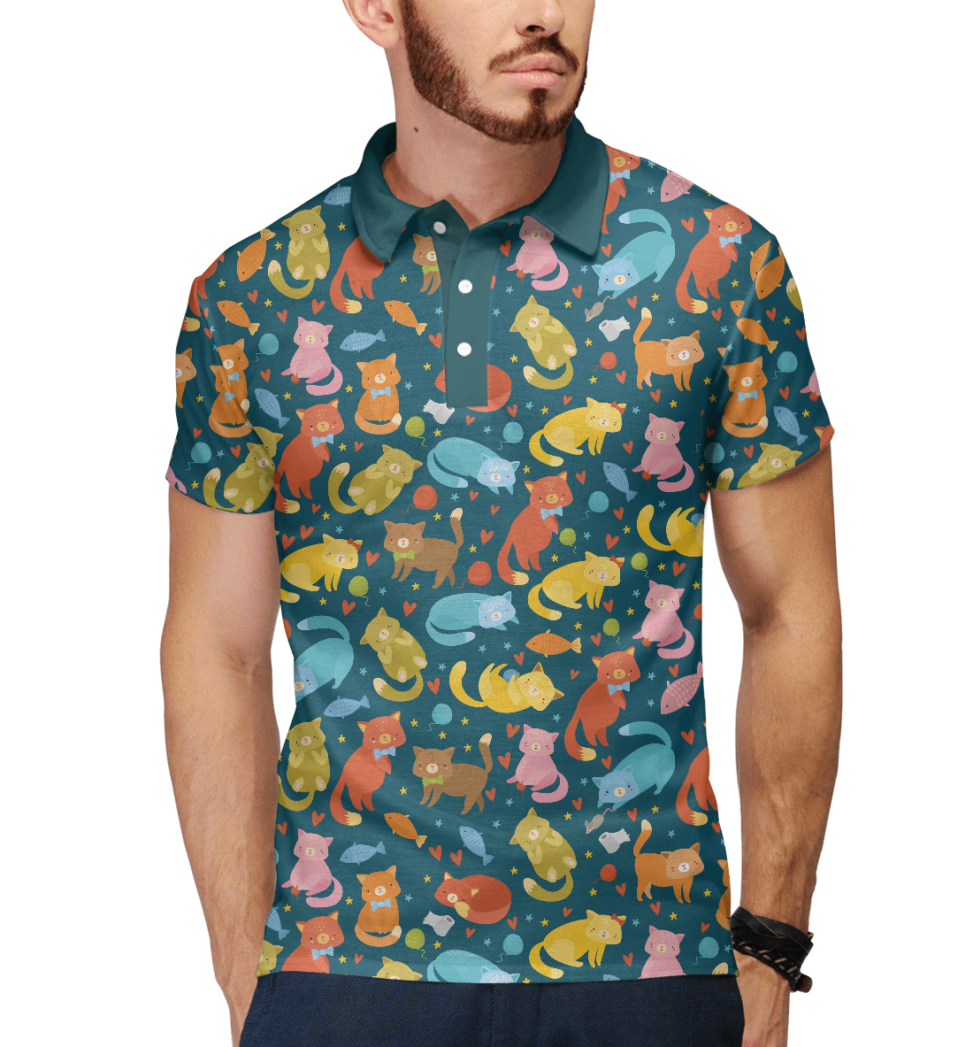 Мужское поло с принтом «Кошкин фон»