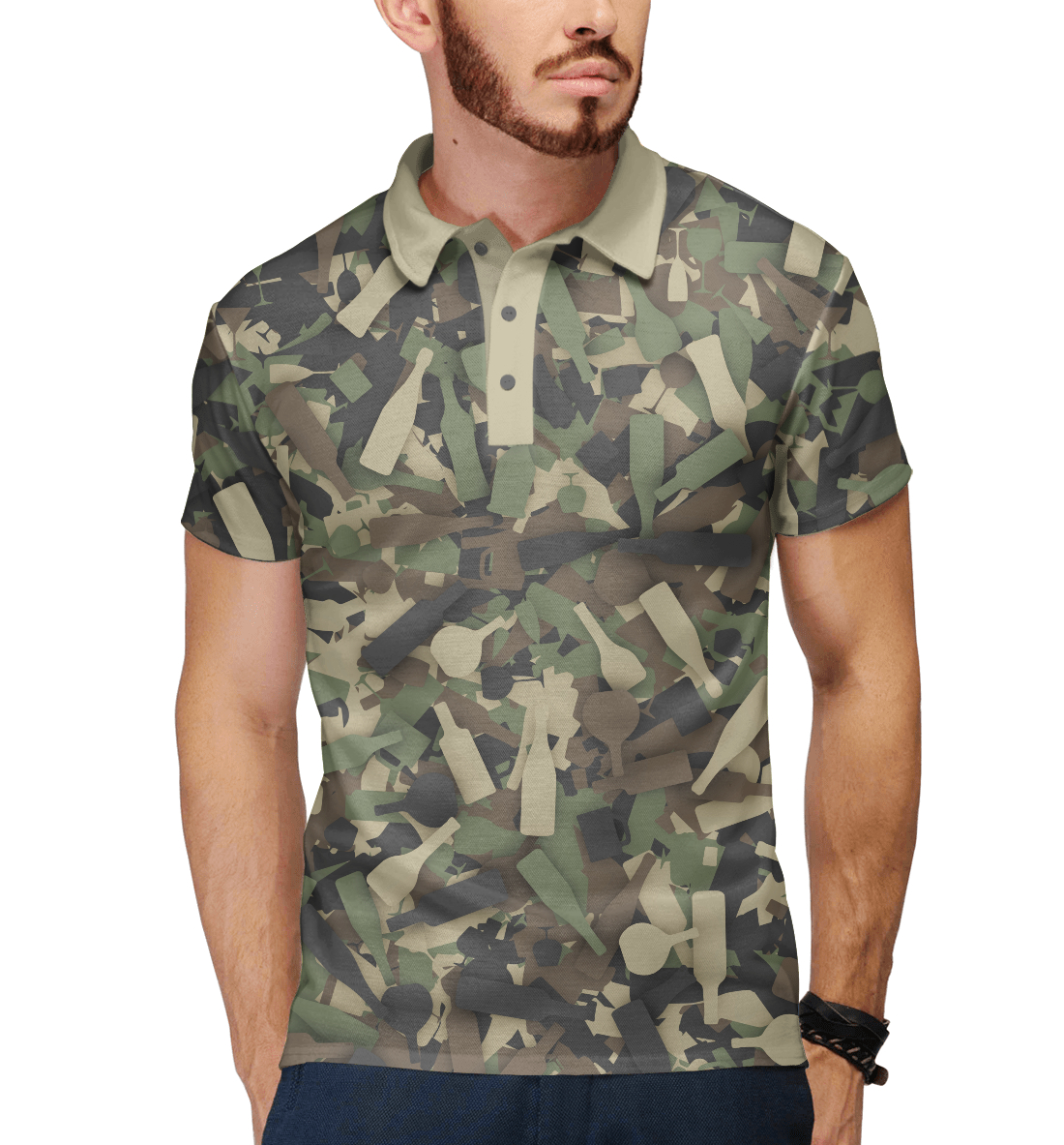 Мужское поло с принтом «Лесной камуфляж с бутылками»