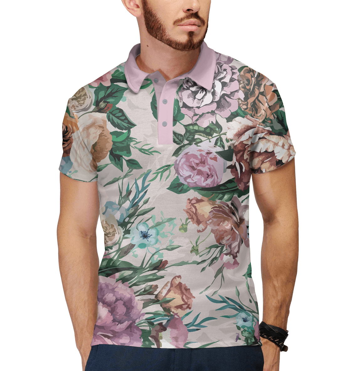 Мужское поло с принтом «Летний цветочный паттерн - розы»