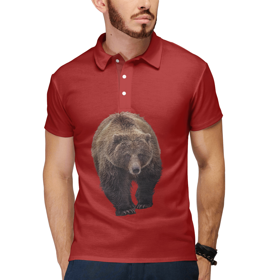 Мужское поло с принтом «Мишка идет»