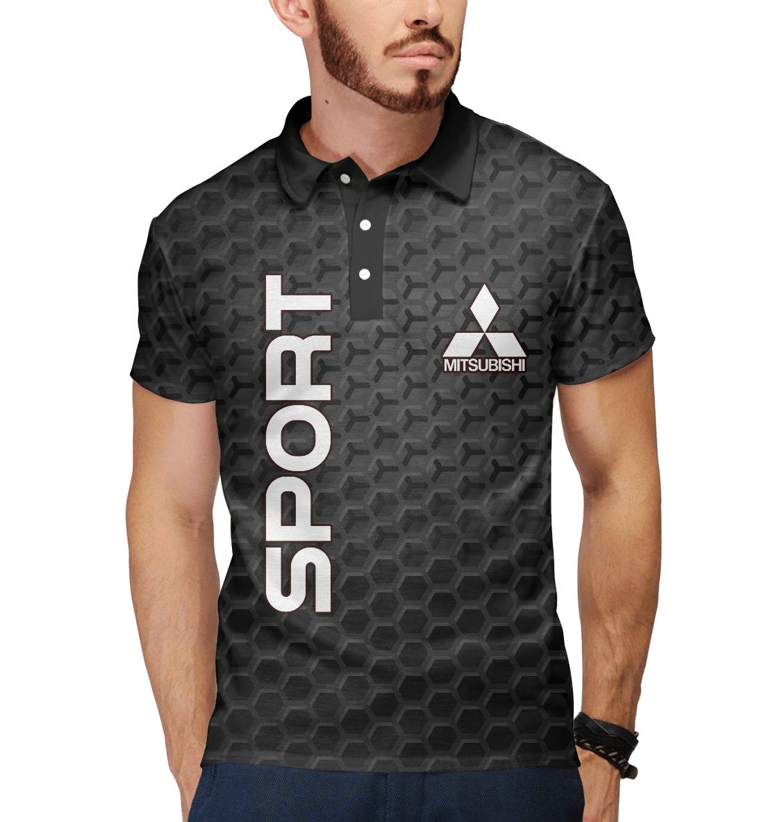 Мужское поло с принтом «Mitsubishi соты на темном фоне»