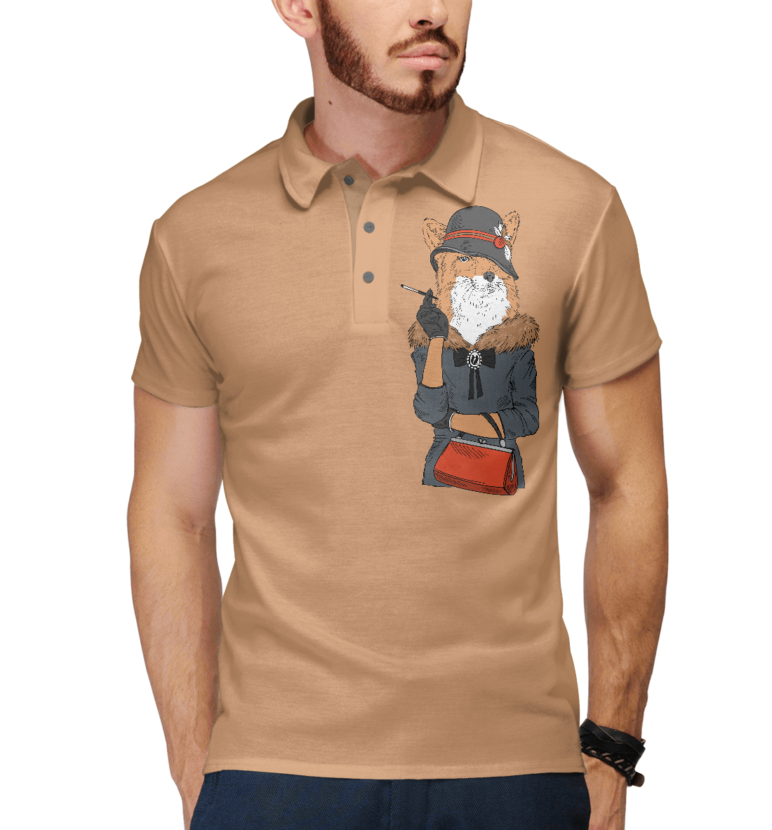 Мужское поло с принтом «Модница лиса»