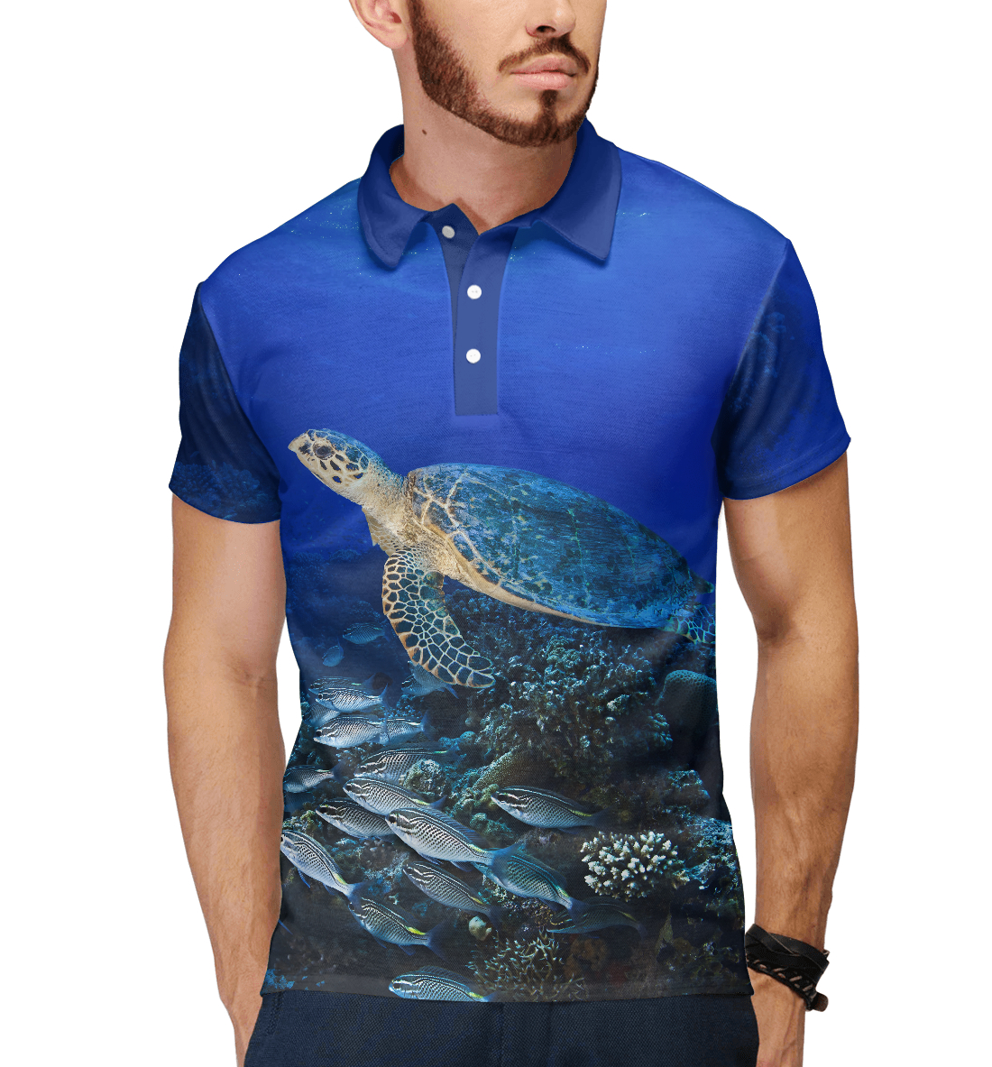 Мужское поло с принтом «Морская черепаха»