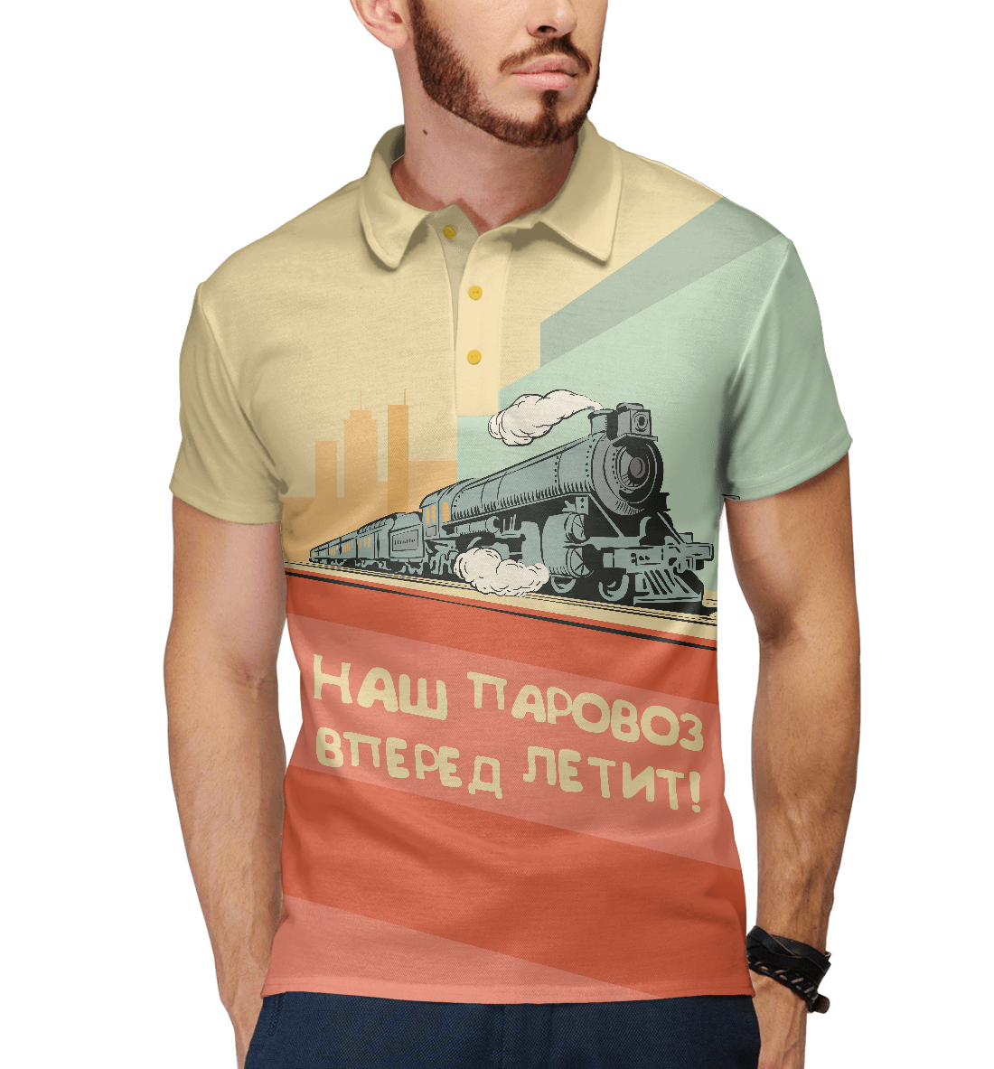 Мужское поло с принтом «Наш паровоз»