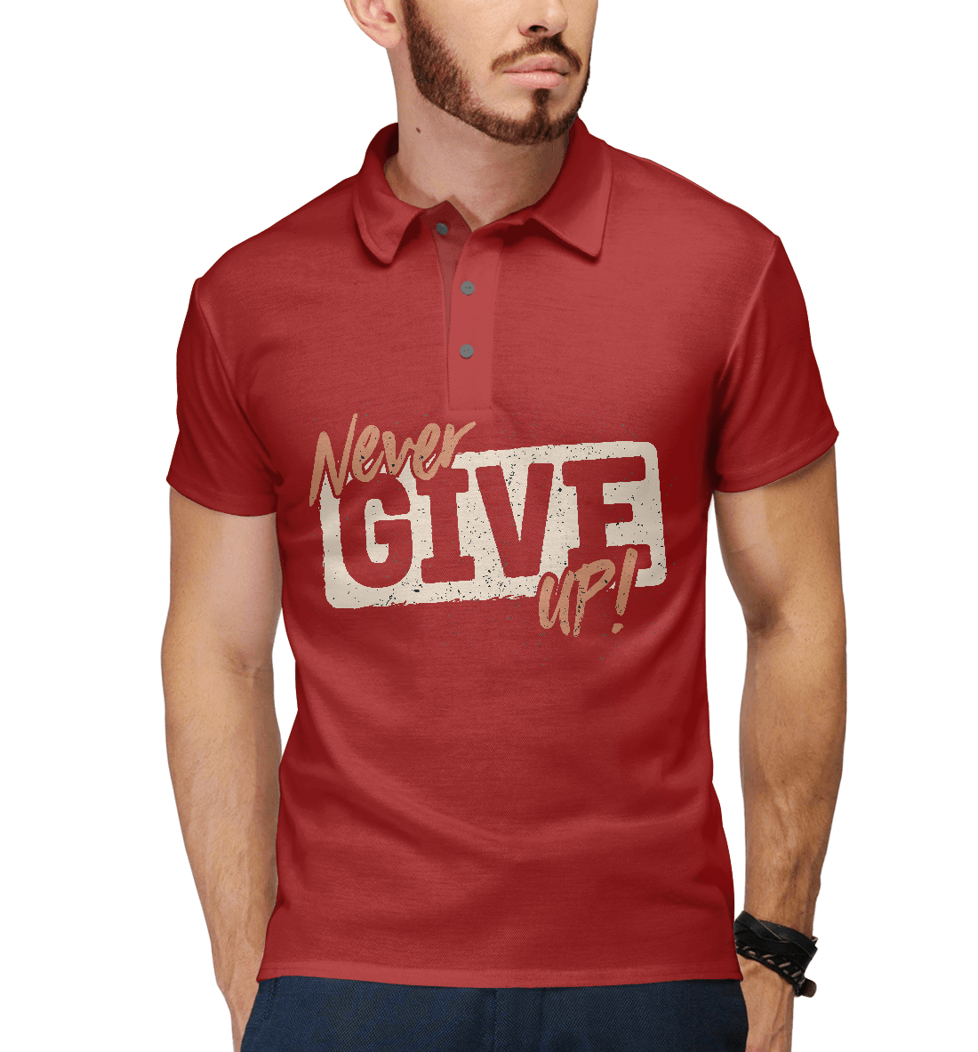 Мужское поло с принтом «Никогда не сдавайся»