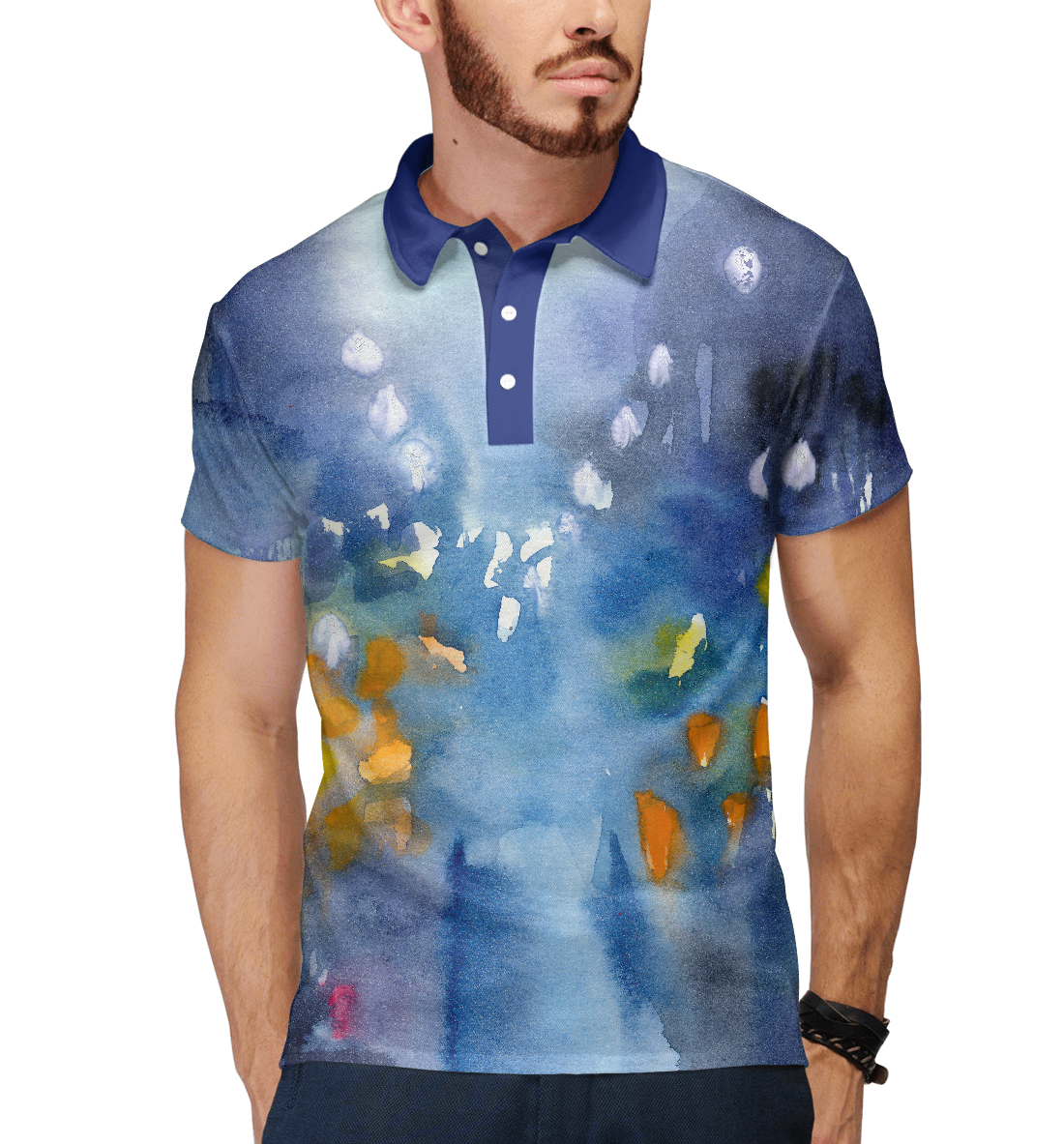 Мужское поло с принтом «Ночной город»