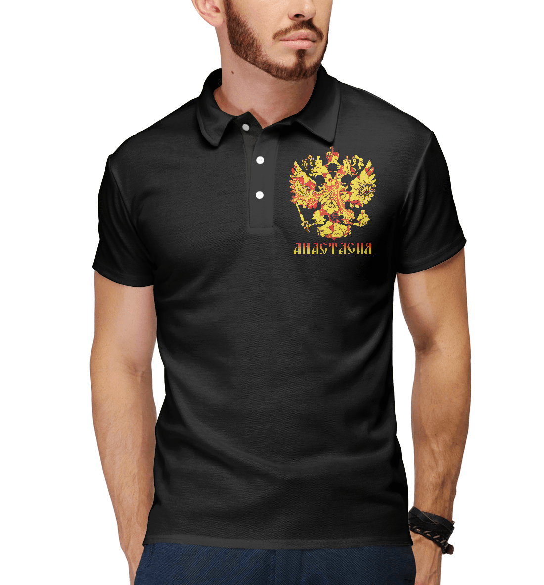 Мужское поло с принтом «Орел в стиле хохломы – Анастасия»