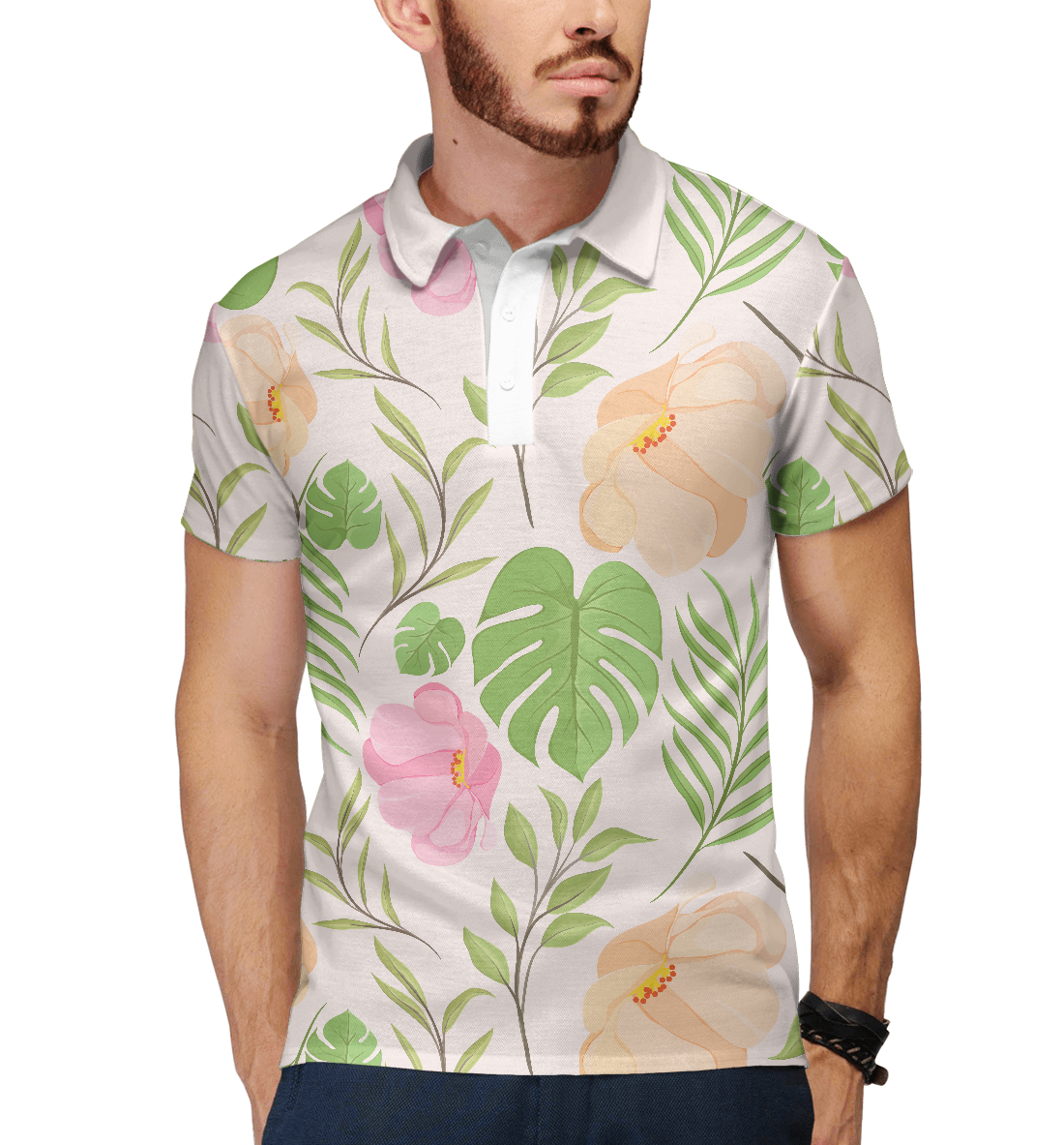 Мужское поло с принтом «Pink flowers (pattern)»
