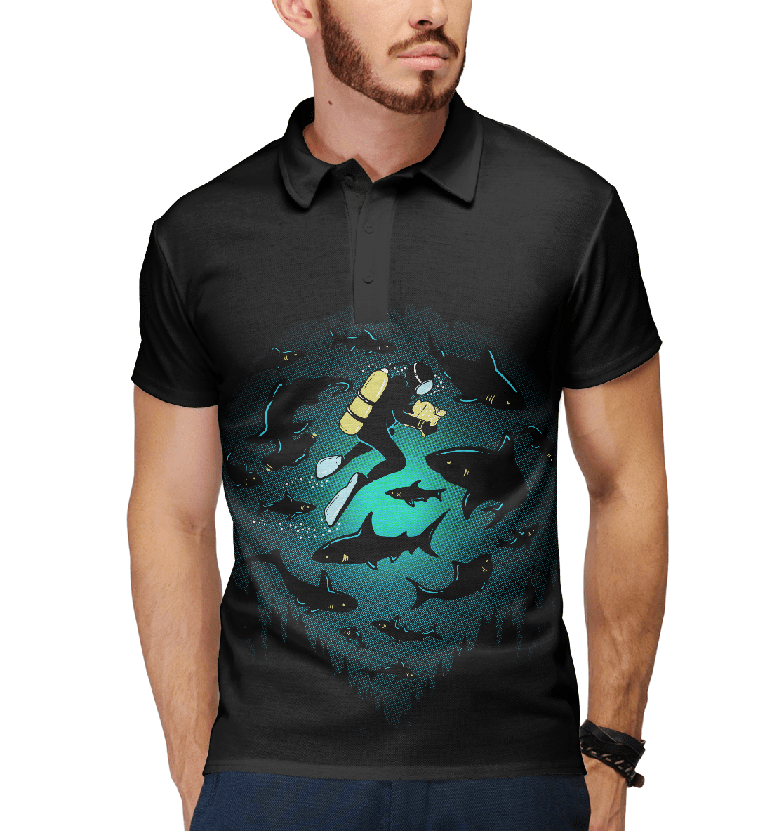 Мужское поло с принтом «Подводный мир»