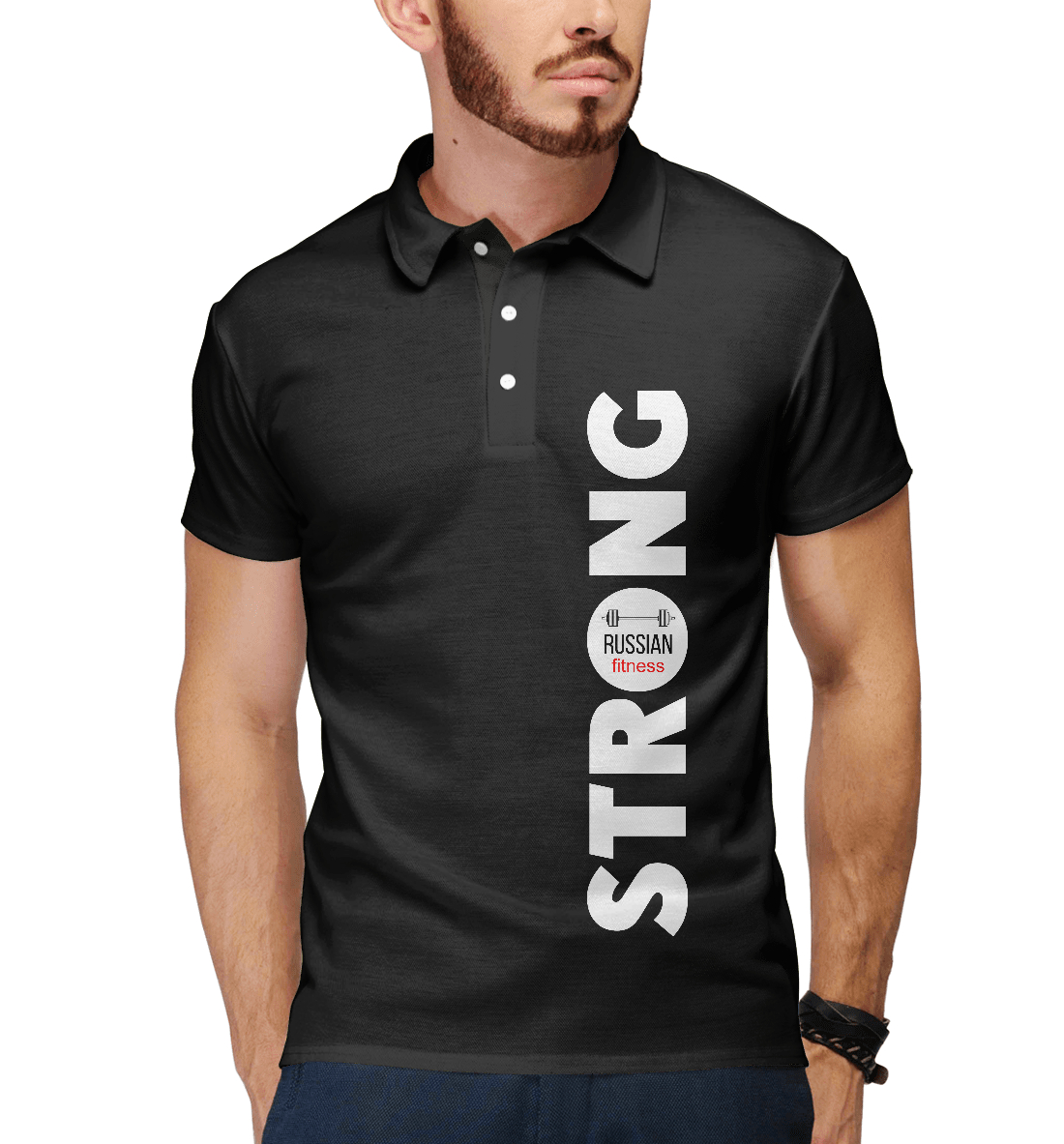 Мужское поло с принтом «Russian fitness»