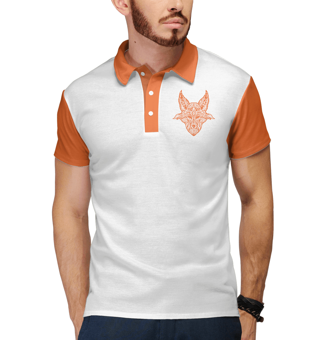Мужское поло с принтом «Рыжая лиса с узорами»