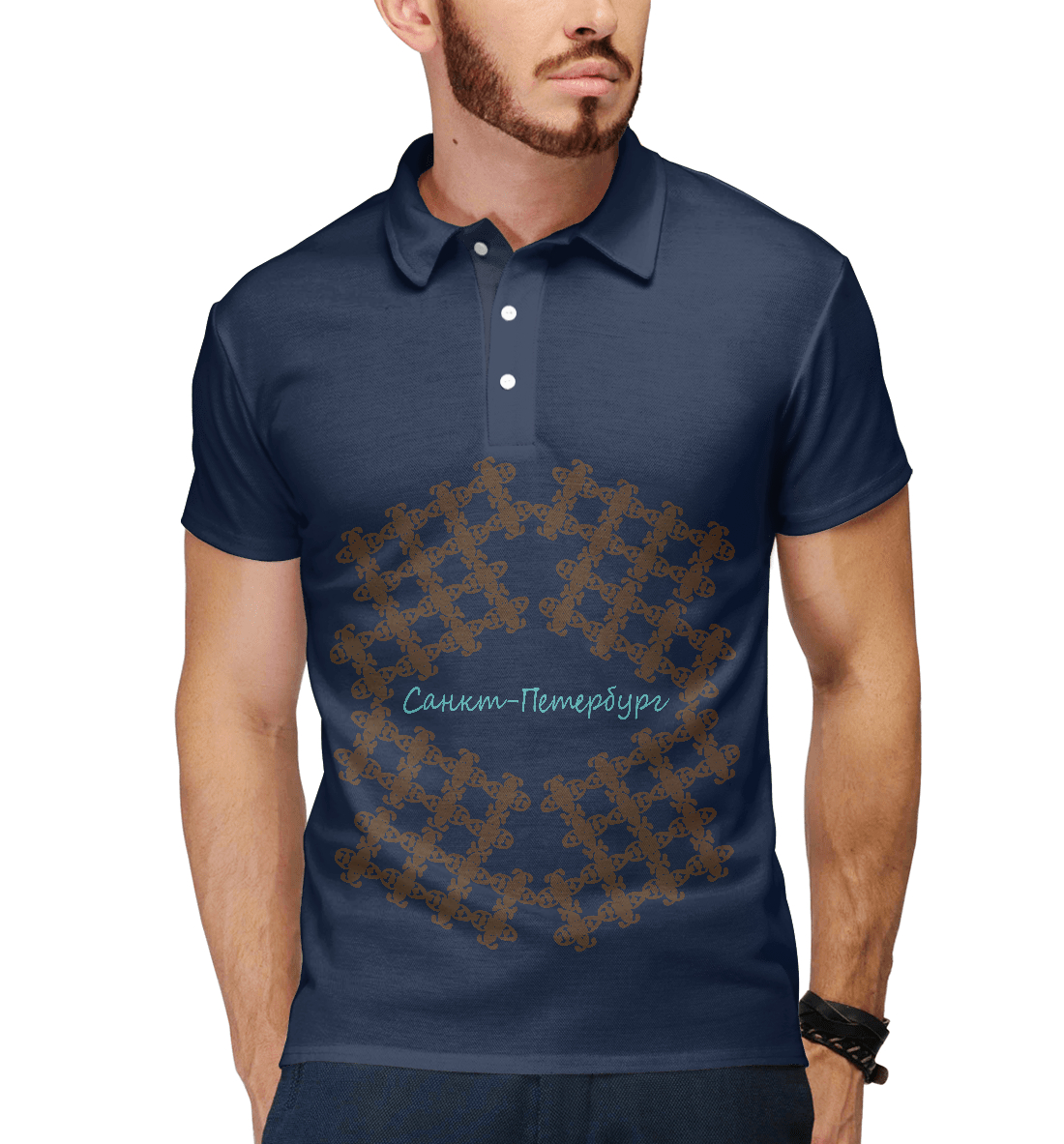 Мужское поло с принтом «Санкт-Петербург узоры»
