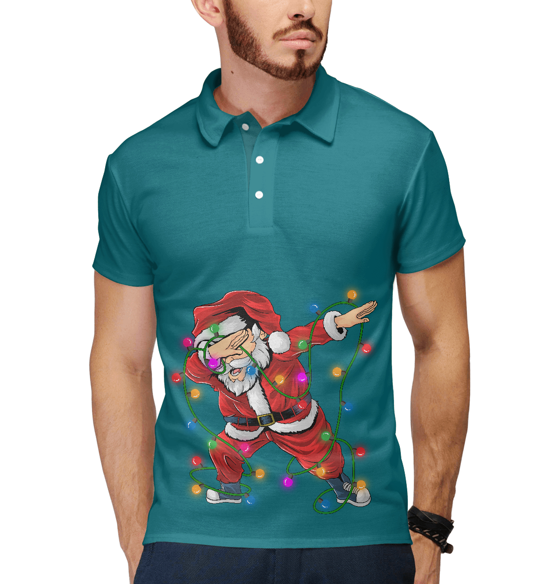 Мужское поло с принтом «Санта Клаус и гирлянда»
