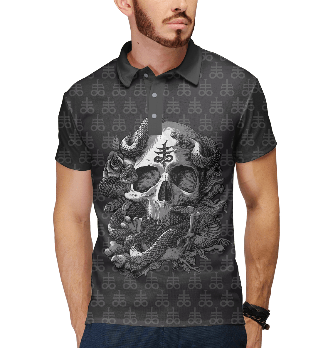 Мужское поло с принтом «Satan Skull»
