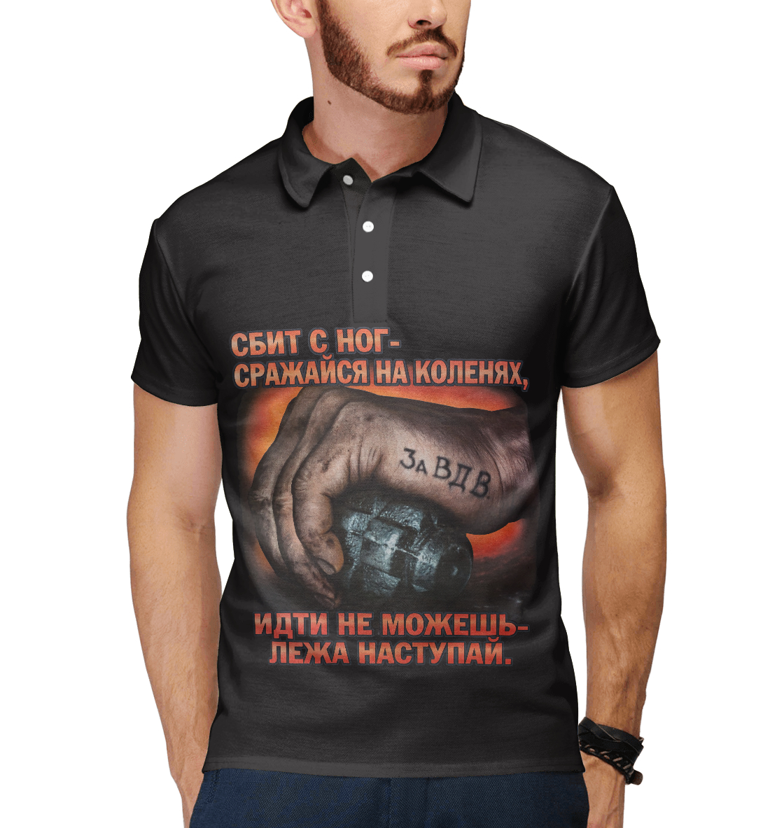 Мужское поло с принтом «Сбит с ног - сражайся на коленях!»