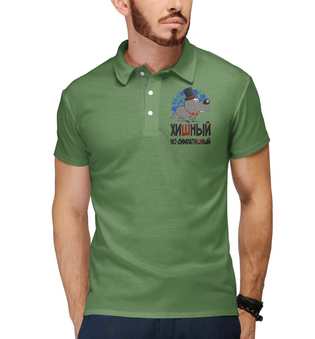 Мужское поло с принтом «Симпатяга волк (зеленый фон)»