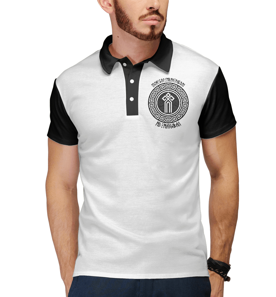 Мужское поло с принтом «Символика Славянский Чур (ч/б)»