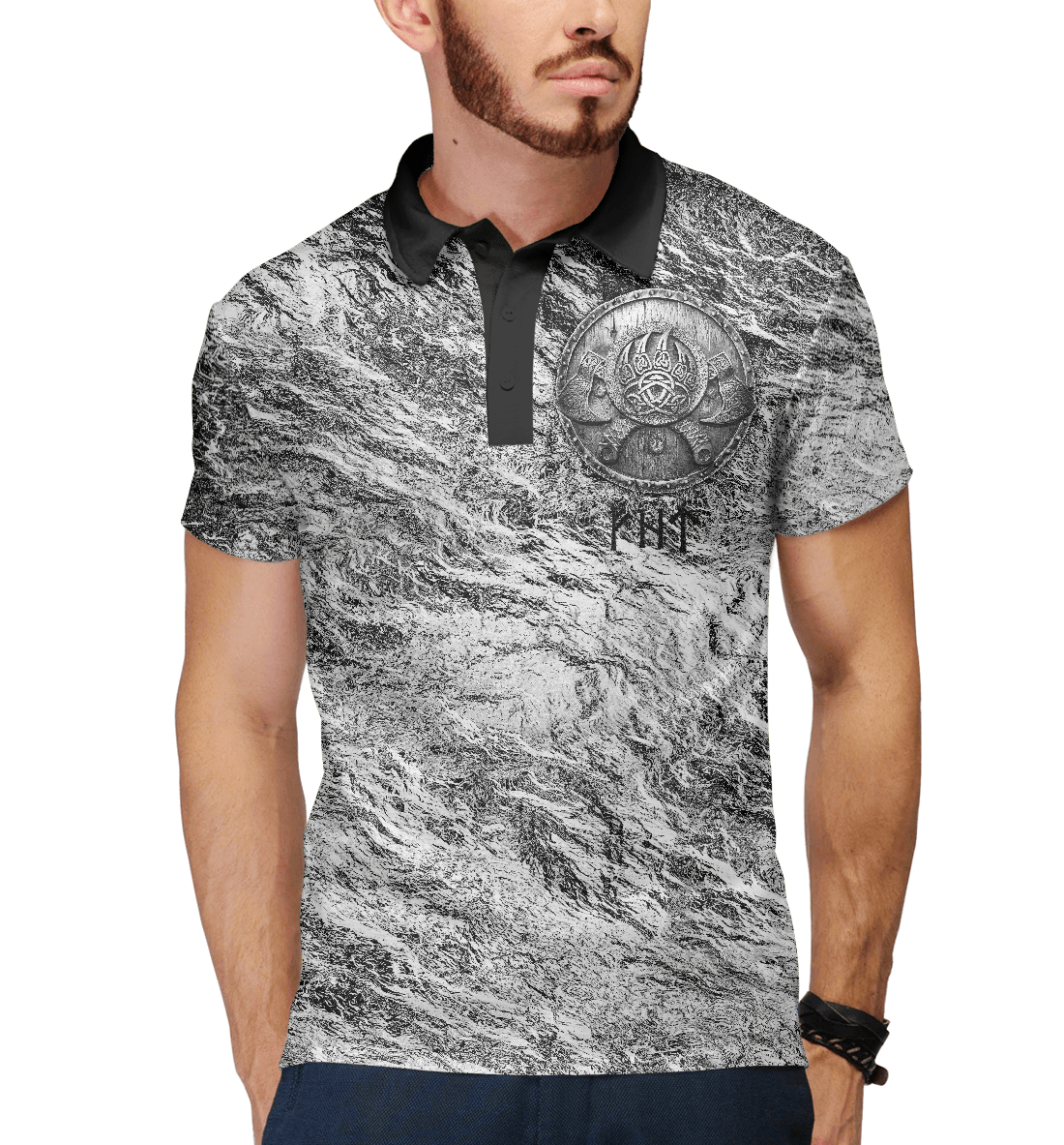 Мужское поло с принтом «Символика воина/руны победы»
