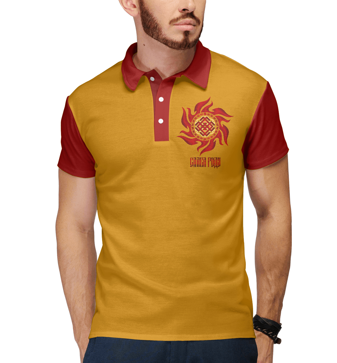 Мужское поло с принтом «Слава Роду/символ Руси в символе солнца»