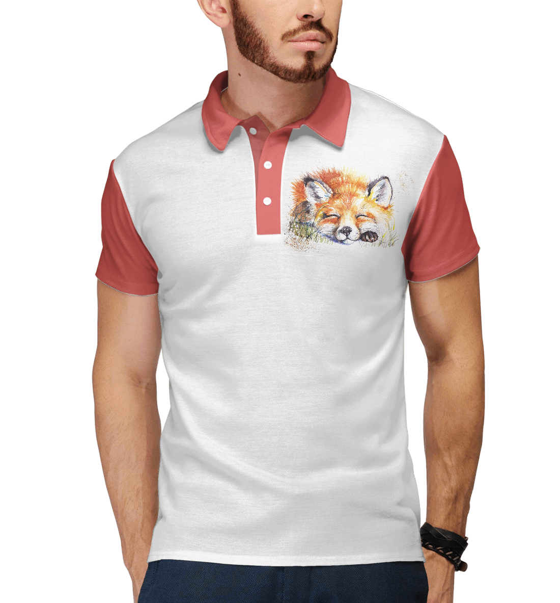 Мужское поло с принтом «Спящий лис»