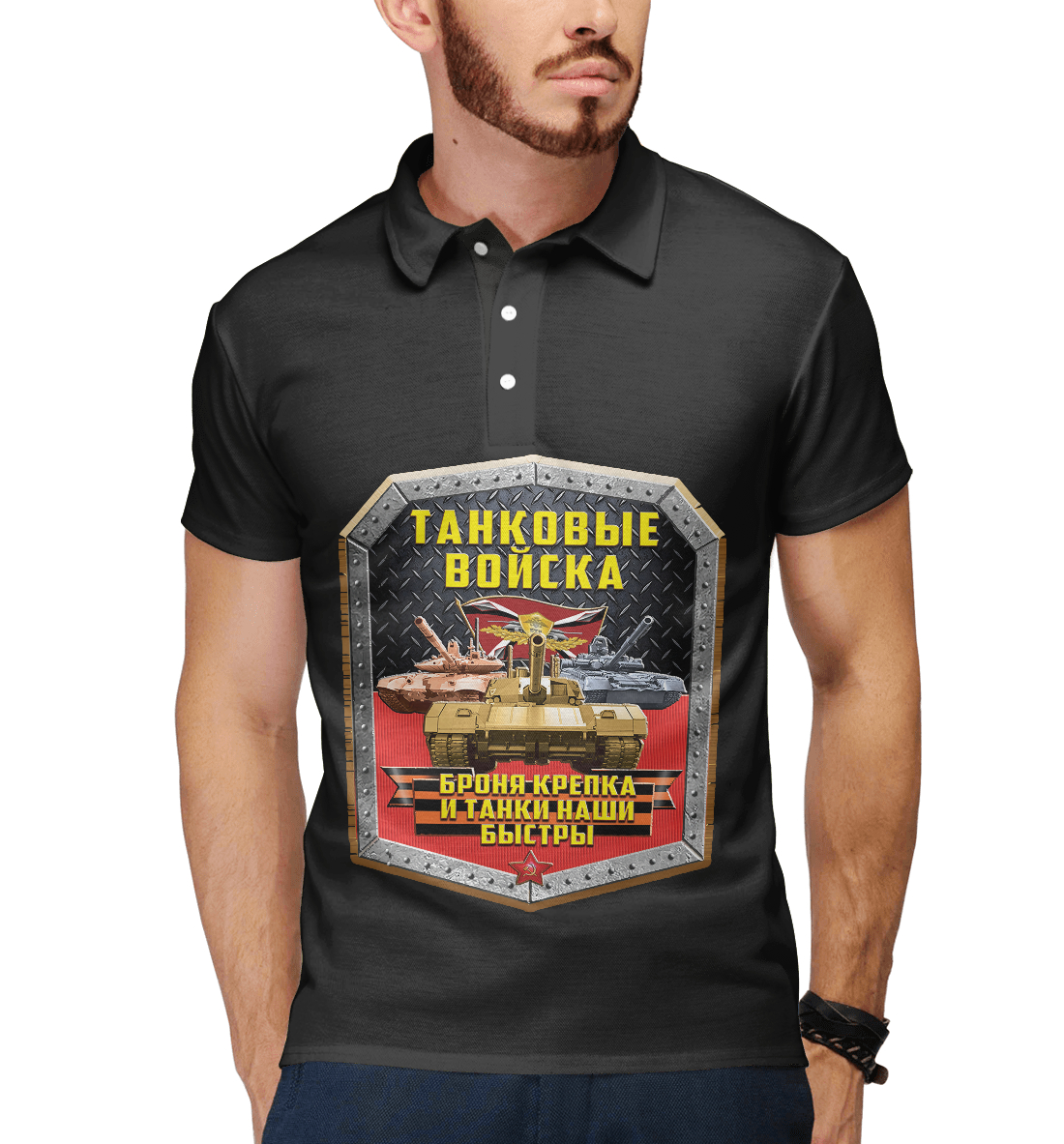 Мужское поло с принтом «ТАНКОВЫЕ ВОЙСКА (броня)»