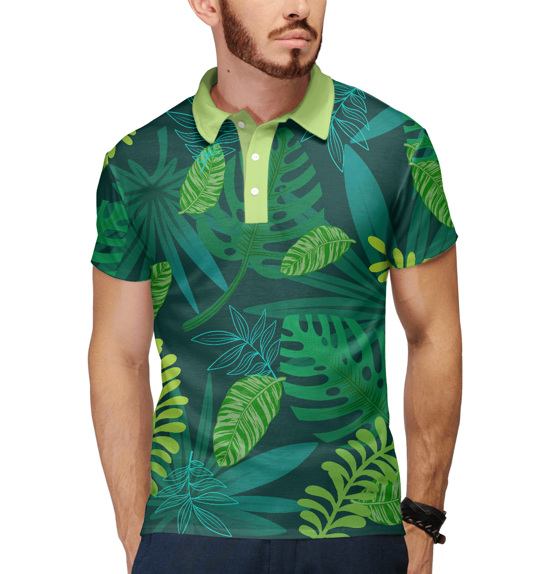Мужское поло с принтом «Тропические листья из серии тропики»