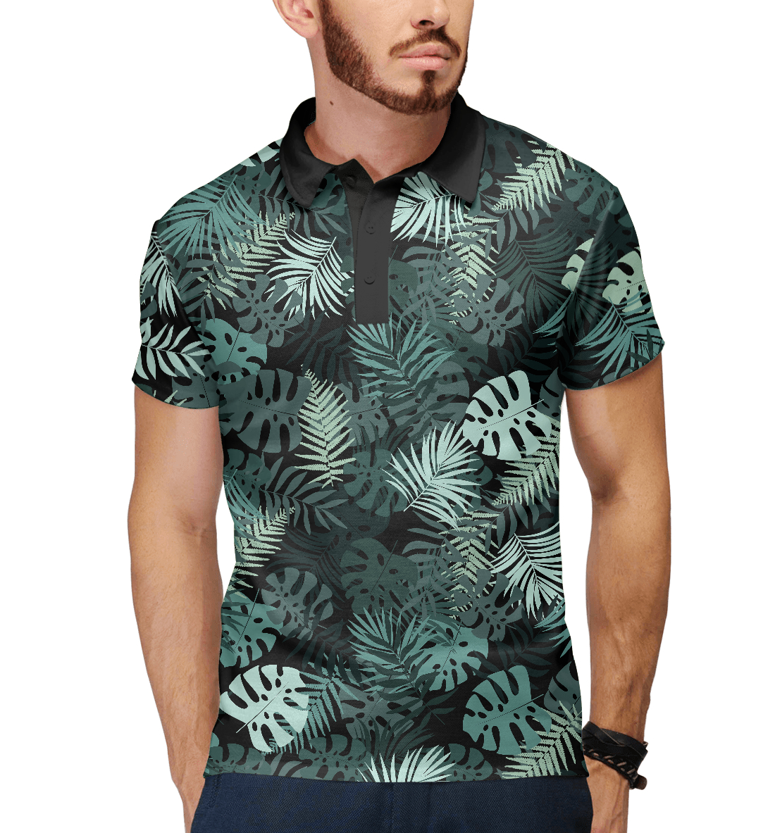 Мужское поло с принтом «Тропические листья монстеры заленые»
