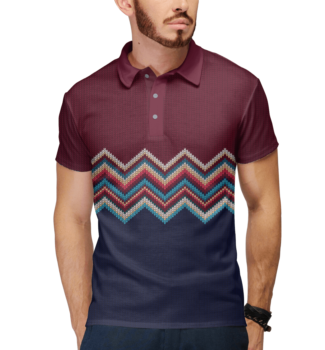 Мужское поло с принтом «Узор (зигзаги)»