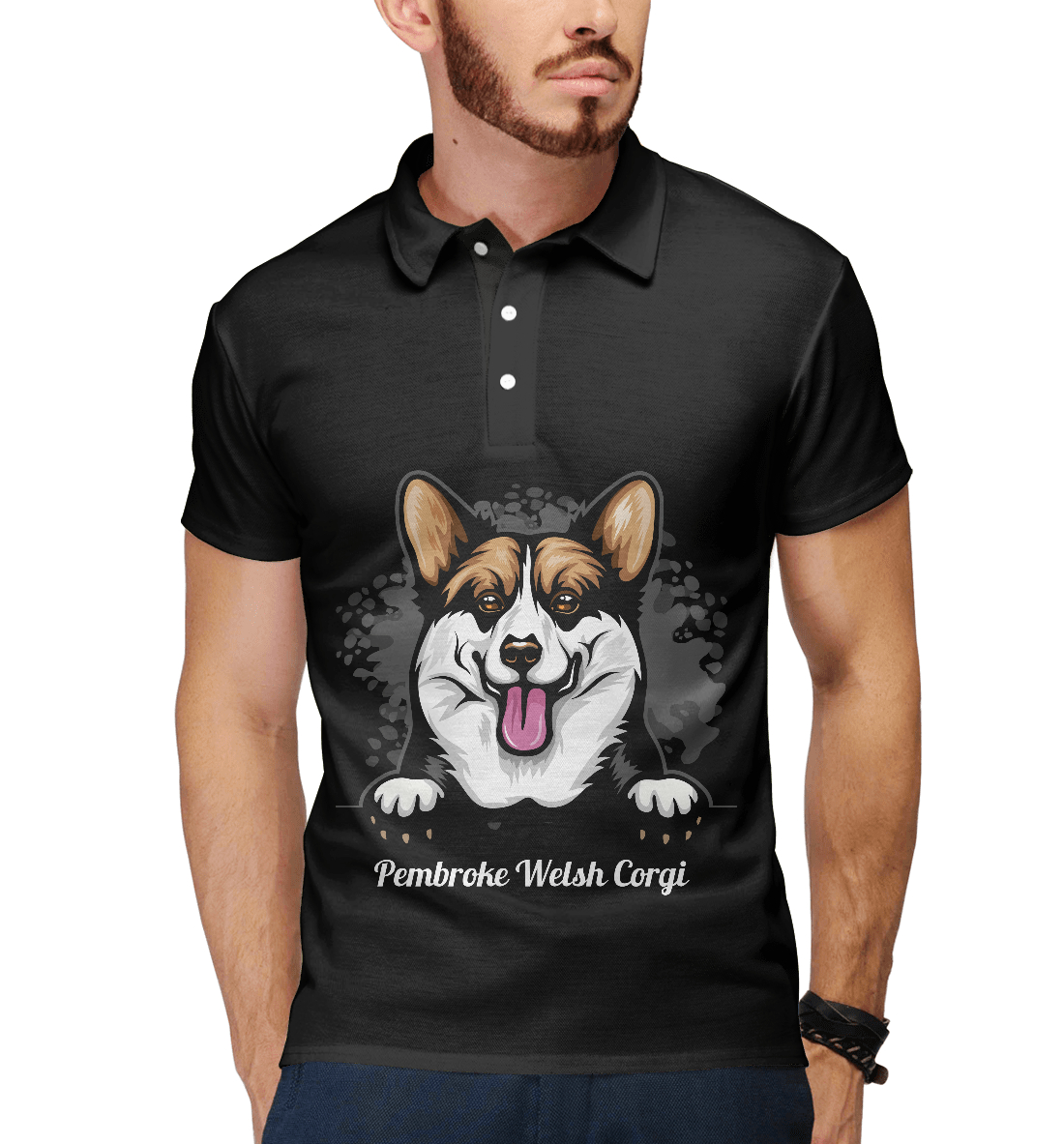 Мужское поло с принтом «Вельш-Корги Пемброк»