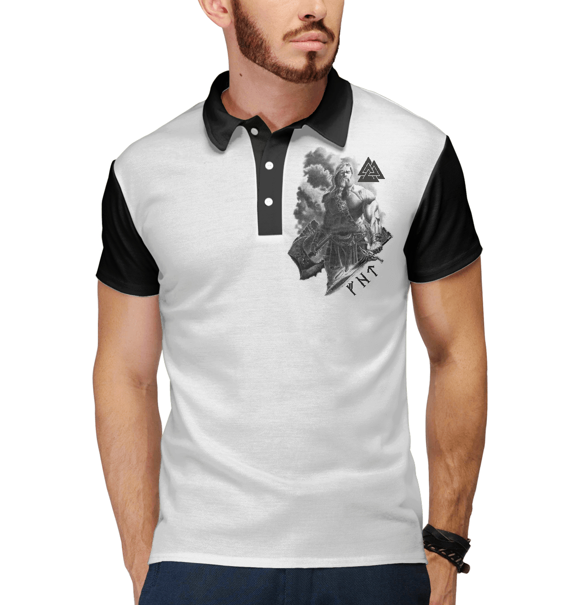 Мужское поло с принтом «Воин с боевыми символами»