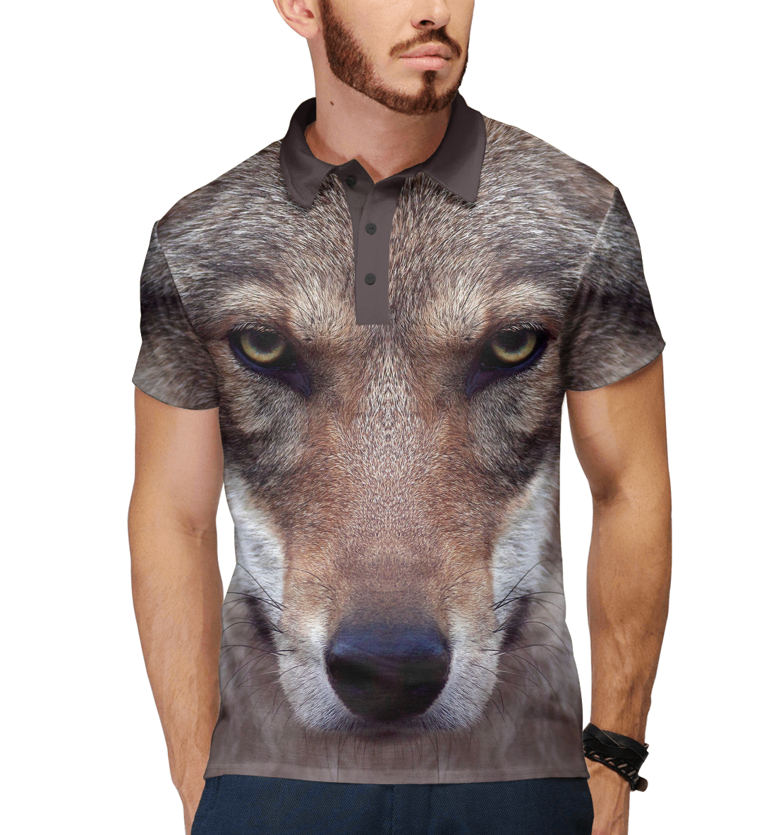 Мужское поло с принтом «Волчий взгляд»