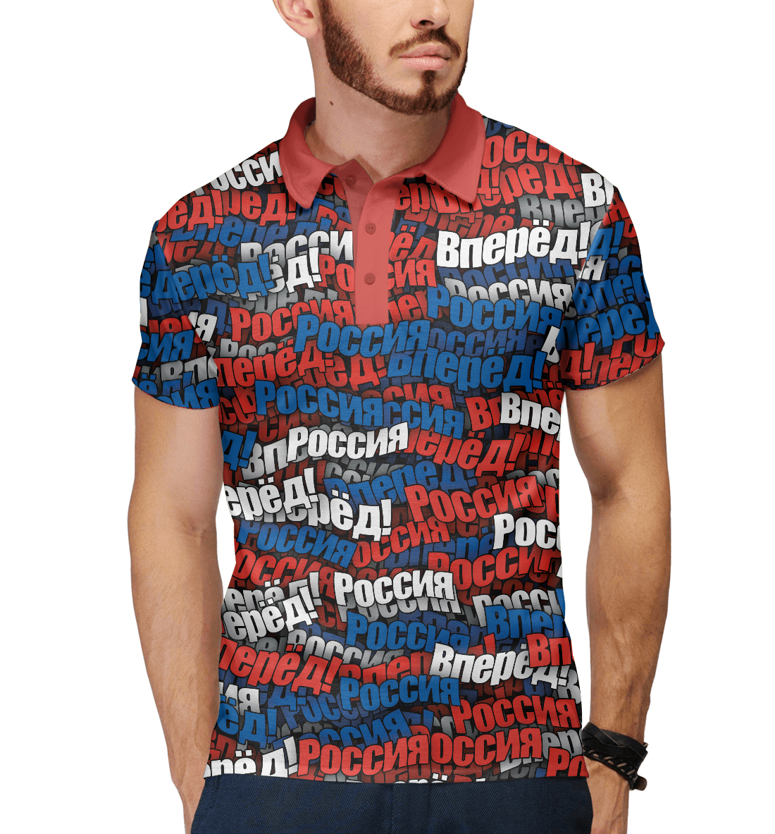 Мужское поло с принтом «Вперёд Вперёд Россия!»