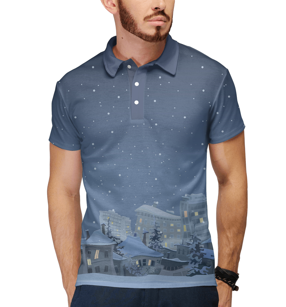 Мужское поло с принтом «Зимний город»