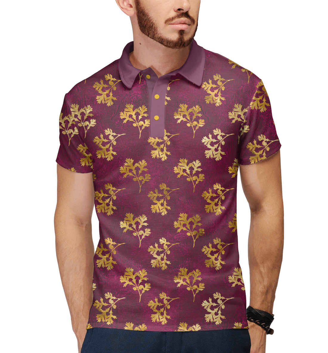 Мужское поло с принтом «Золотые ветки»