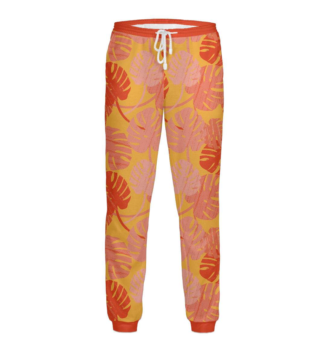 Мужские спортивные штаны с принтом «Большие резные листья на оранжевом фоне»