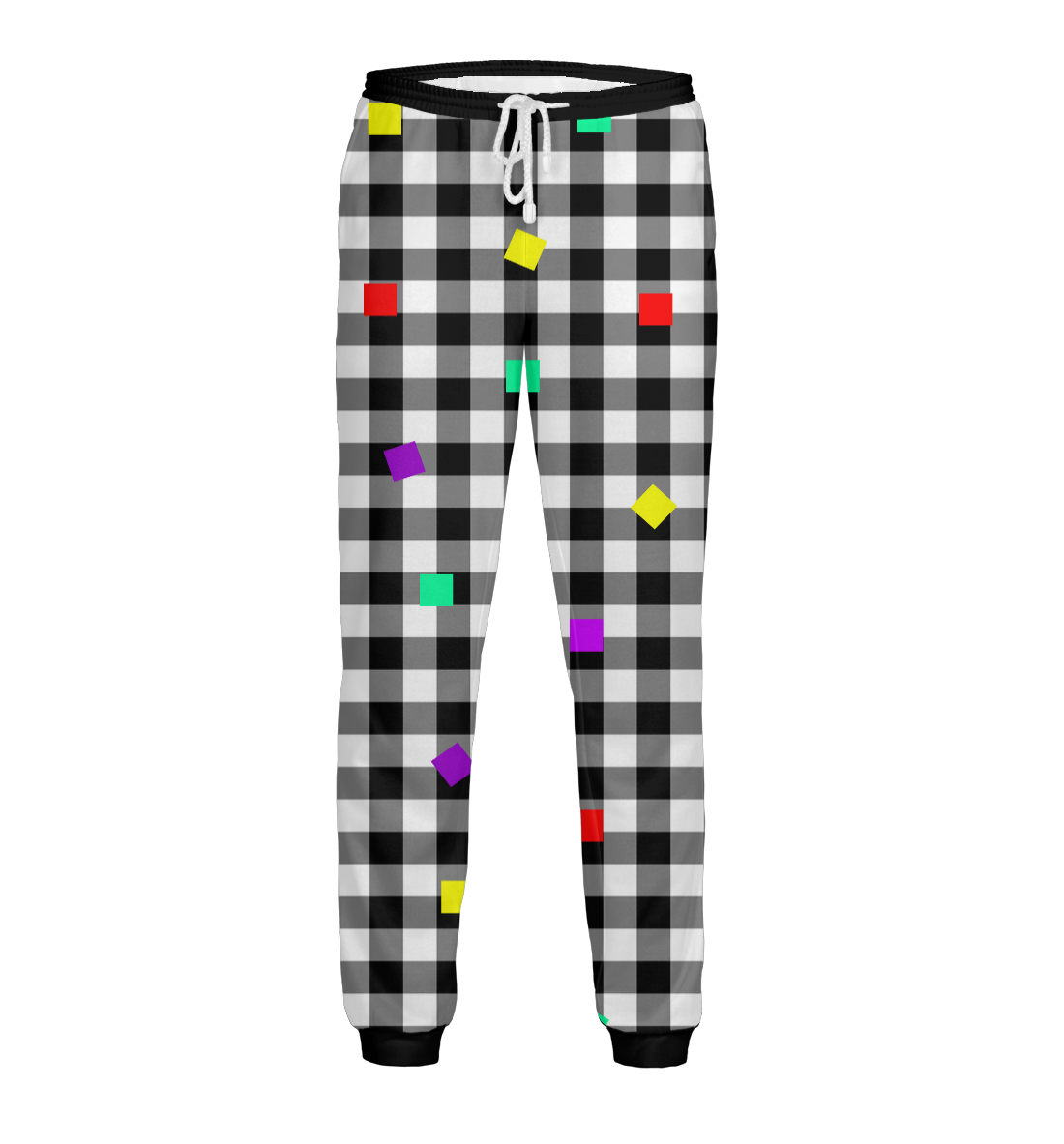 Мужские спортивные штаны с принтом «Черно-белая клетка и цветные квадраты»