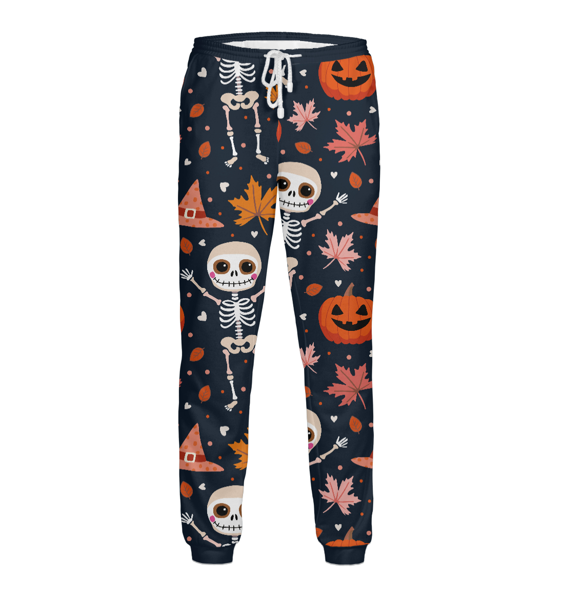 Мужские спортивные штаны с принтом «Веселый скелет с тыквами»