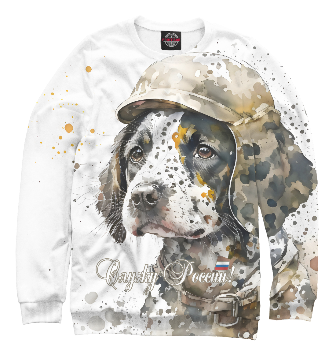 Мужской свитшот с принтом «Акварельный щенок в военном камуфляже»