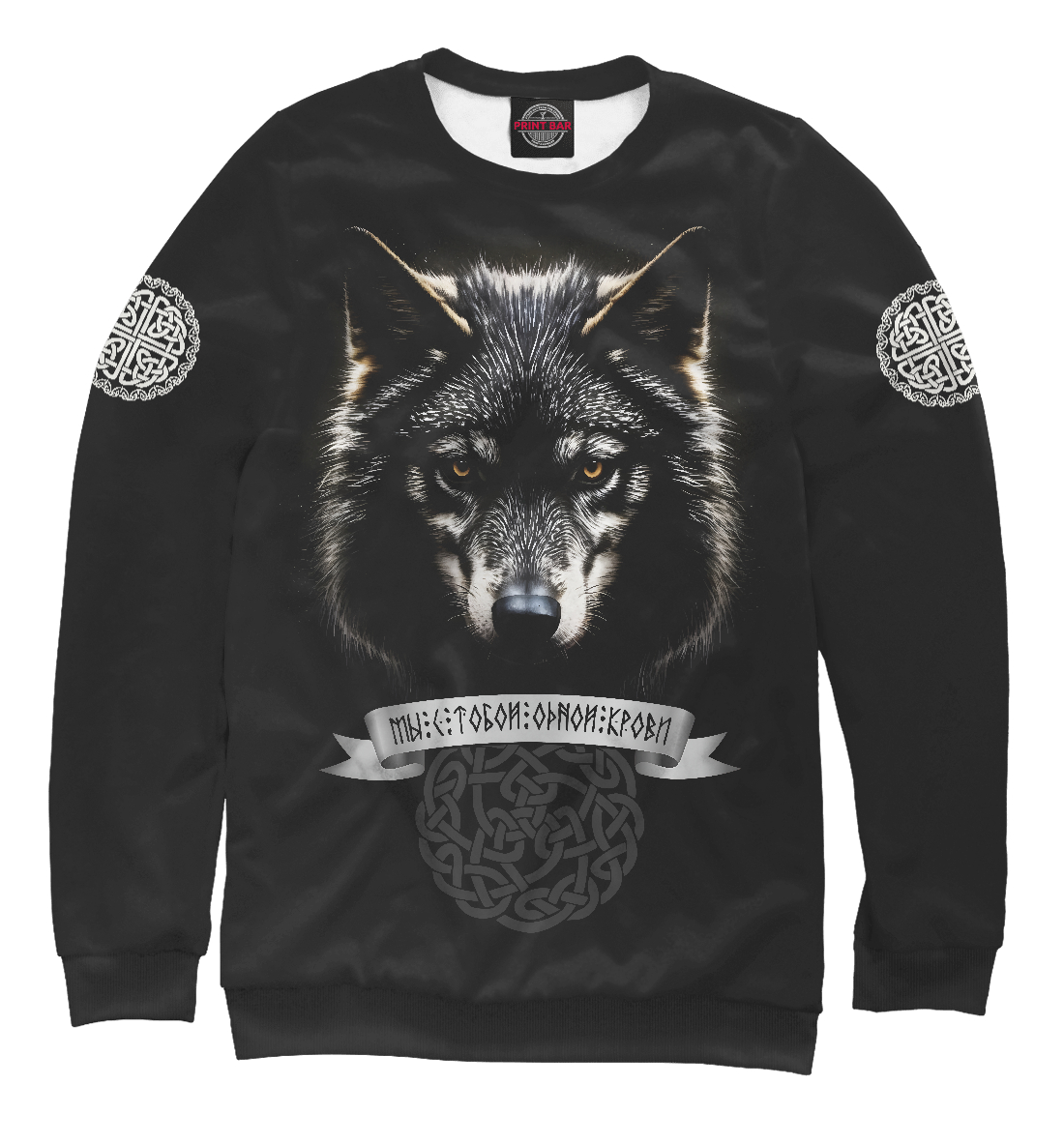 Мужской свитшот с принтом «Чёрный волк - мы с тобой одной крови»