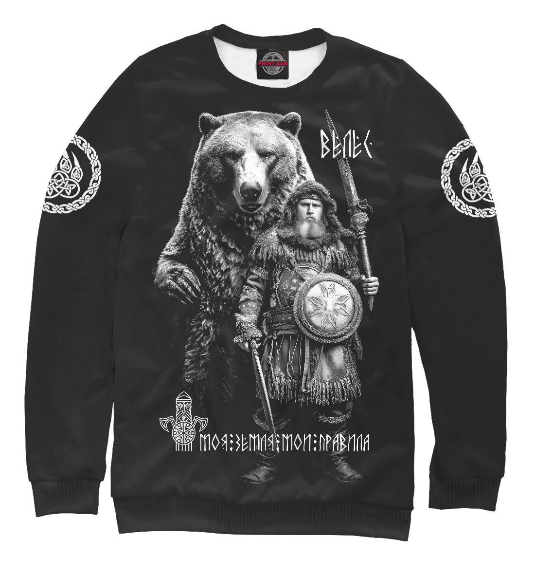 Мужской свитшот с принтом «Велес с большим медведем»