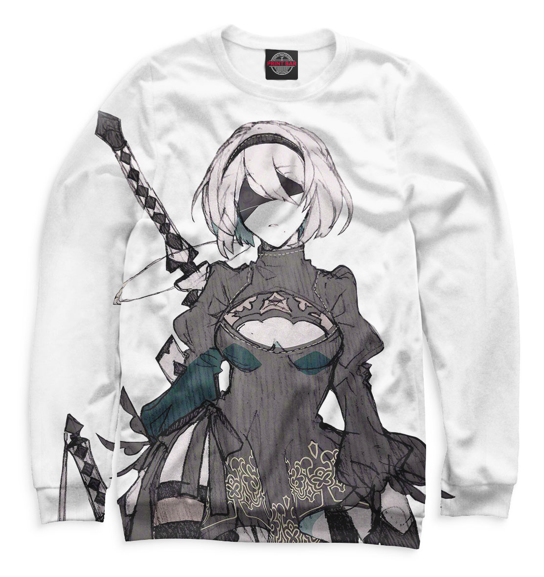 Мужской свитшот с принтом «Nier Automata 2b чб»