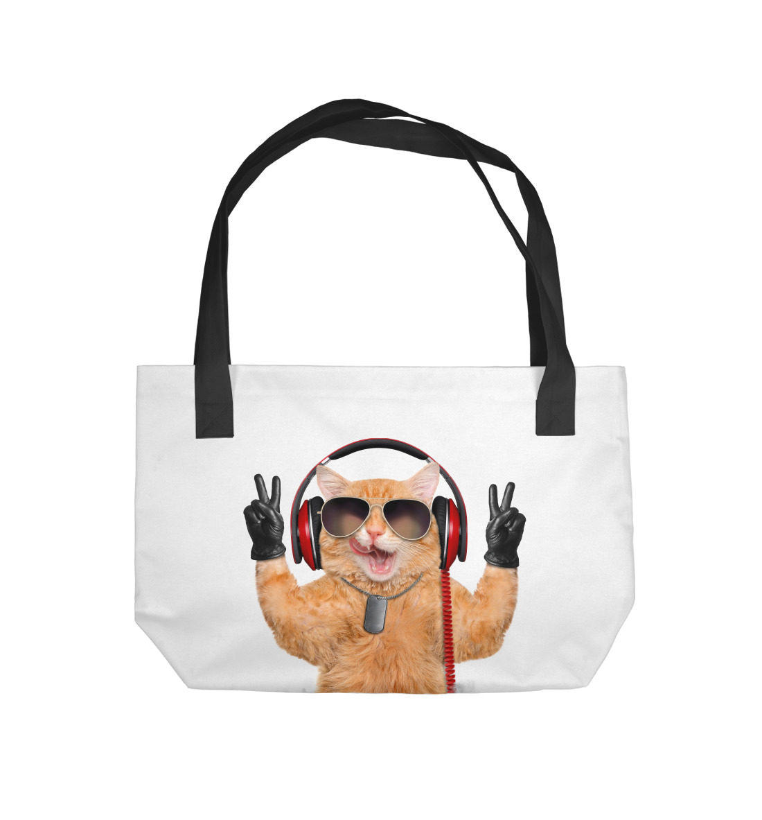 Пляжная сумка с принтом «Cat music lover»