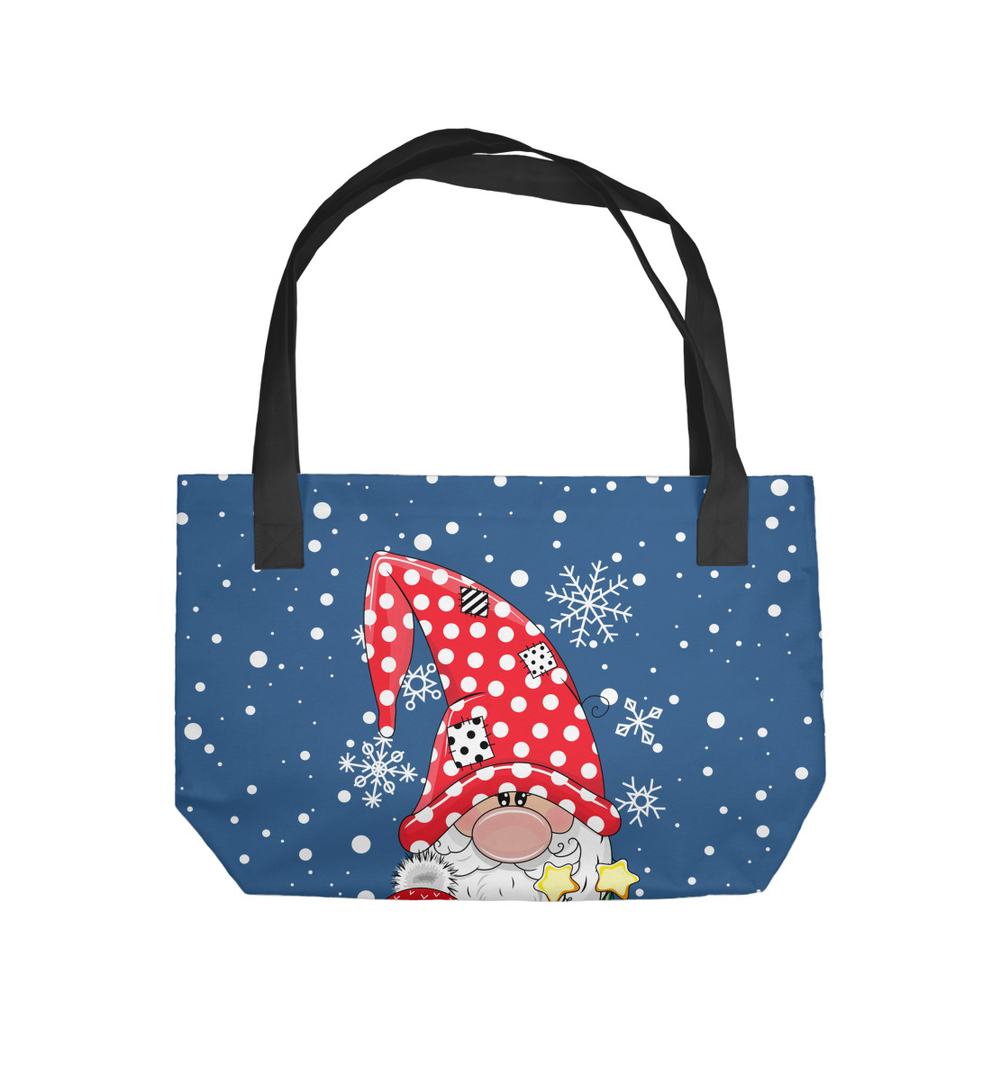 Пляжная сумка с принтом «Новогодние совушки и гном»