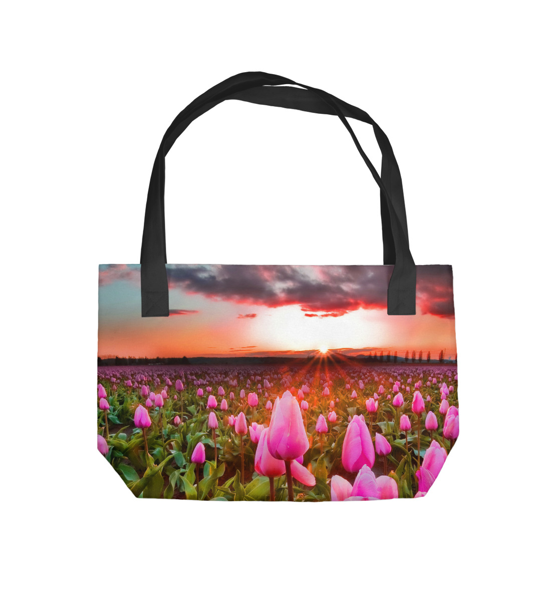 Пляжная сумка с принтом «Розовые тюльпаны»