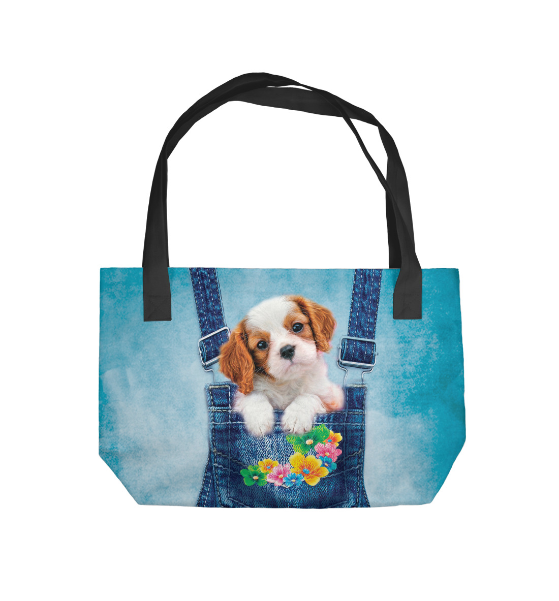 Пляжная сумка с принтом «Щенок в кармашке»